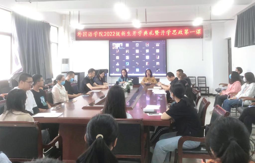 9月20日下午,万象城官网在3号组团楼A座402会议室举行2022级学生开学典礼暨新生思政第一课。会议以线上线下相结合的方式召开,学院领导班子全体成员、各专业系部主任、学工办、教学办、2022级学生班主任、全体新生参加了会议。