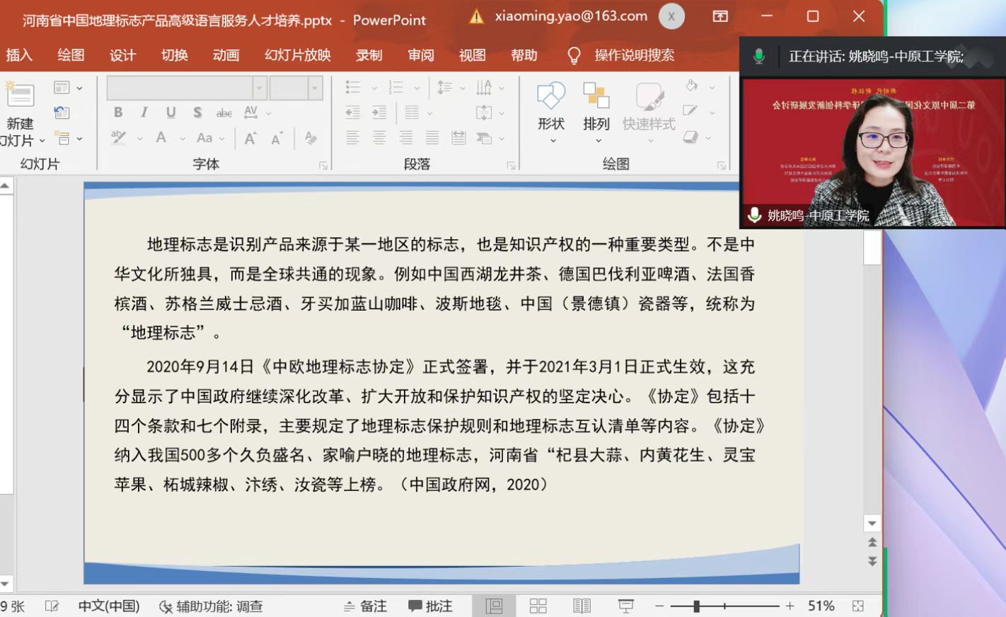 在下午的分论坛讨论环节,万象城allwincity官网院长姚晓鸣教授做了题为“河南中国地理标志产品高级语言服务人才培养”的主旨发言,分享了万象城allwincity官网在“黄河文化翻译与传播”方面所做的最新研究成果。姚晓鸣教授指出,地理标志产品不仅是物质文化的传承和传播,也是历史文化和精神文化的传承和传播,研究中国地理标志产品的海外推广和中国地理标志产品的高级语言服务人才培养,对促进河南文化传播、探索校企高级语言服务人才培养路径具有重要理论与实践意义。