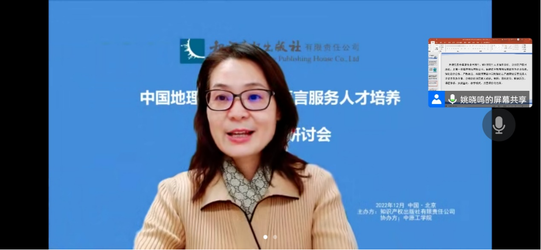 为深入学习贯彻党的二十大精神,落实《知识产权强国建设纲要(2021-2035年)》《“十四五”国家知识产权保护和运用规划》,中国地理标志国际化语言服务人才培养与文化传播研讨会于2022年12月17日通过线上方式开展。本研讨会聚焦研讨《中欧地理标志协定》的签署带来的机遇与挑战,如何用外语讲好中国地理标志故事,地理标志国际化传播、地理标志语言服务人才培养,地理标志跨境电商人才培养等话题,为高校语言服务人才培养探索新方向,为高校学生就业添加新动能。