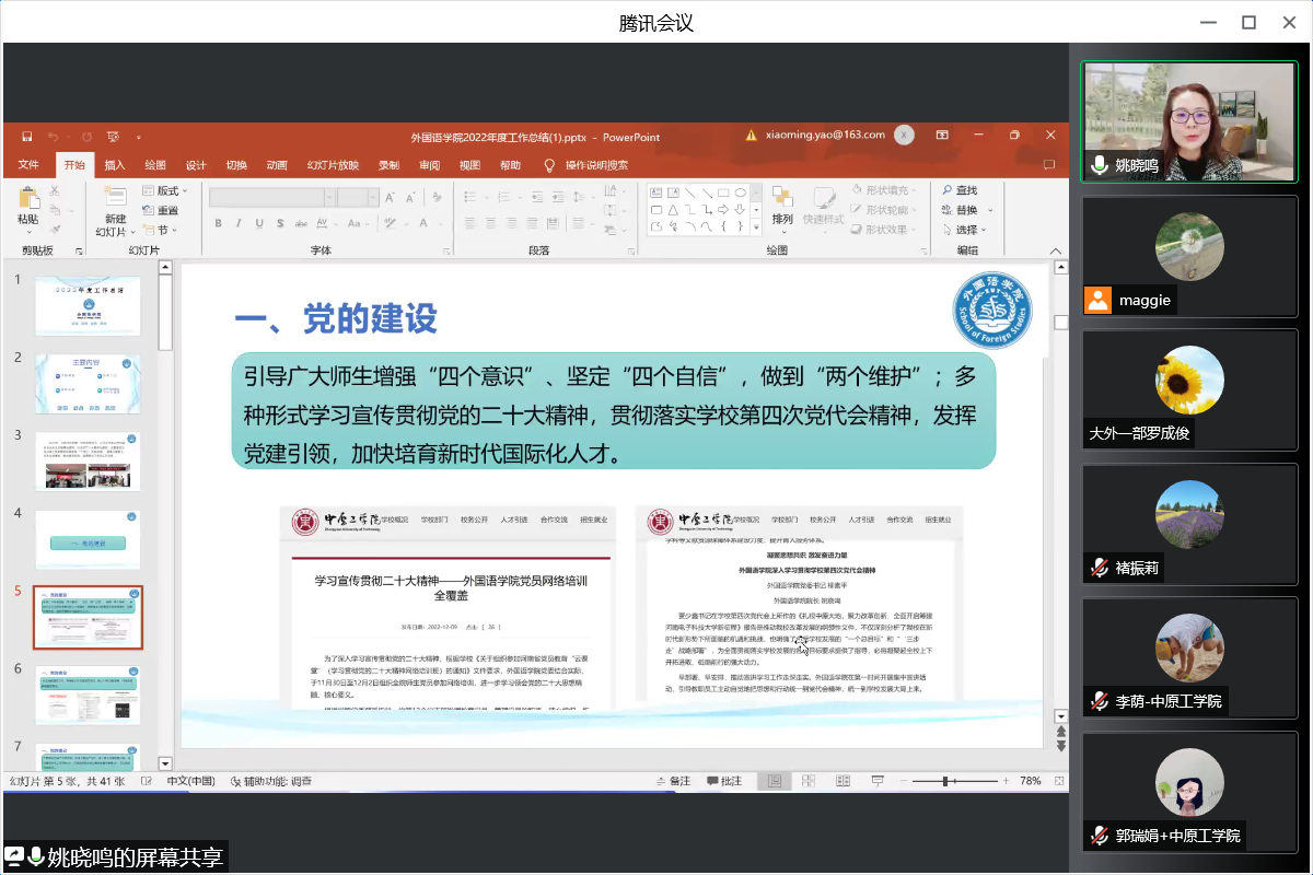 会上,院长姚晓鸣首先作了万象城allwincity官网2022年度工作报告,报告从党建工作、业务工作、疫情防控工作三个方面回顾和总结了2022年学院各项工作的发展情况,充分肯定了广大师生的努力成果。其次,办公室主任郝菁、分工会主席闫秋霞分别就学院财务账目、分工会工作、教代会提案情况、分工会财务账目等事项做了总体汇报和说明。