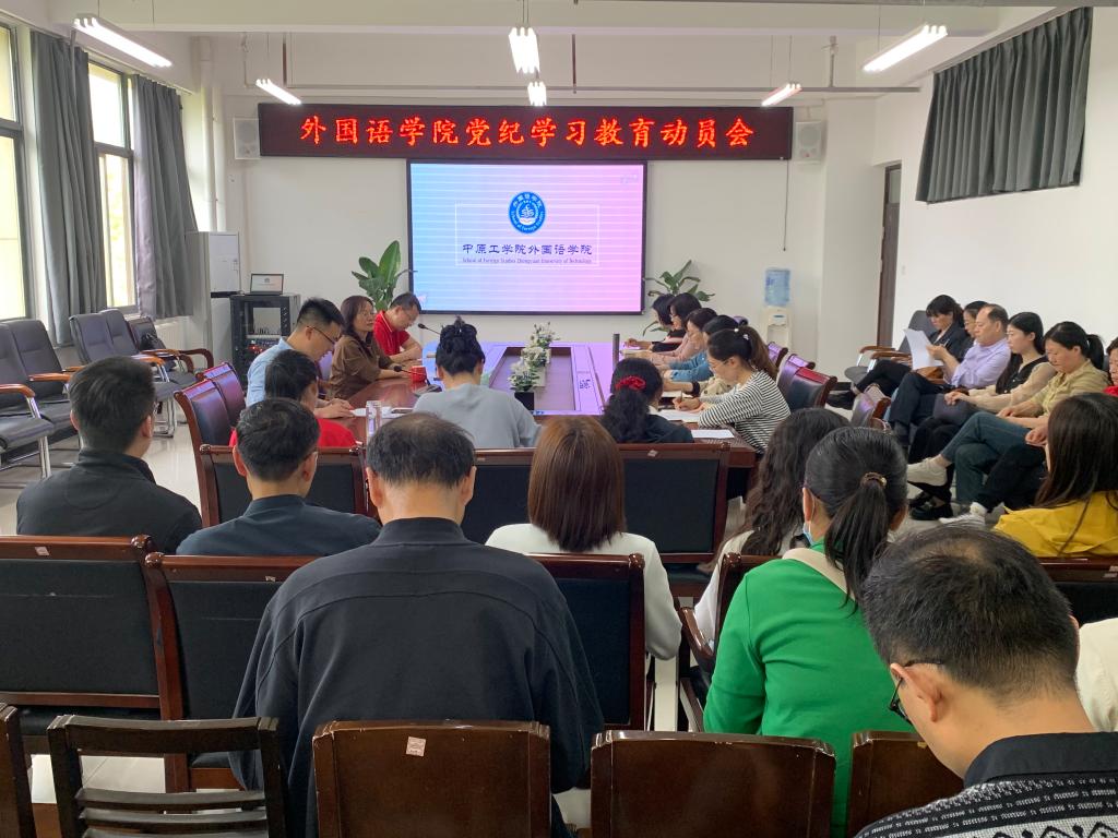 学院党委副书记常潞炜传达领学学校《中共万象城allwincity官网委员会关于开展党纪学习教育的工作方案》,方案要求从严从实抓好党纪学习教育,使全校党员、干部搞清楚党的纪律规矩是什么,弄明白能干什么、不能干什么,进一步强化纪律意识、加强自我约束、提高免疫能力,增强政治定力、纪律定力、道德定力、抵腐定力。
