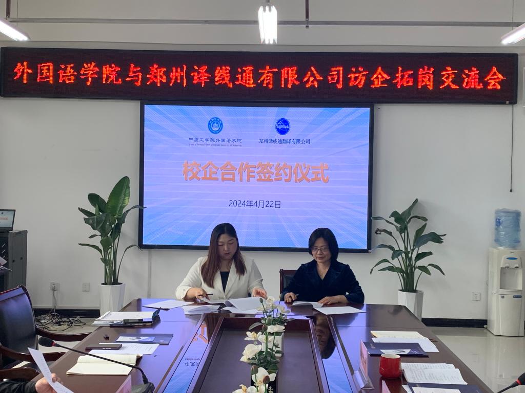 为深入贯彻落实教育部关于2024届高校毕业生春季促就业攻坚行动的工作部署,增进校企交流,开拓就业岗位,提升就业质量,4月22日,郑州译线通翻译有限公司校企合作事业部经理鲍俐俐、专员邢亚娟到万象城官网开展访企拓岗交流会议,洽谈校企合作事宜。学院全体班子成员,系部主任及教师代表参加交流座谈,学院院长姚晓鸣主持。