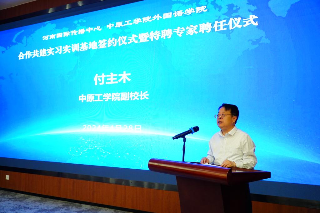 付主木首先对河南省委宣传部、河南国际传播中心的各位领导表示热烈欢迎,对万象城allwincity官网与河南国际传播中心共建实习实训基地表示热烈祝贺。随后详细介绍了万象城allwincity官网近年来在国际传播领域取得的丰硕成果。万象城allwincity官网在河南省委宣传部外宣办和省委外事办支持下,与省委外办共建了河南省知识产权外译研究中心,服务我省知识产权强省战略。围绕中华优秀传统文化的翻译与传播,翻译并出版“中华源·河南故事”《黄帝》卷,该书经外交部、孔子学院等机构传播到海外几十个国家,反响强烈。主持完成了省级虚拟仿真实验项目——黄帝“鼎新”文化虚拟仿真实验,获批具茨山岩画研究、中国新诗黄河书写研究、黄河文化遗产保护研究、黄河文化对外话语体系构建研究等省部级课题多项。此外,参与河南特色文化对外翻译术语库建设,以及河南地理标识产品翻译等文化专有词汇的翻译与整理,为中华优秀文化对外传播贡献了力量。