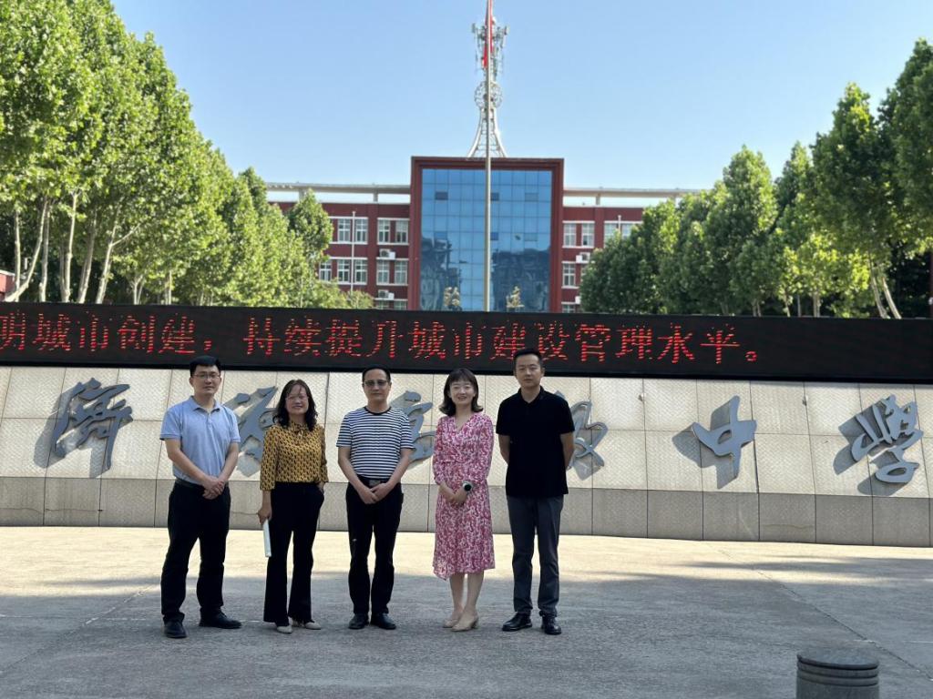 在济源市第四中学,柳素平、薛冬梅、李向民、郝菁及大外一部副主任王磊一行五人与济源第四中学教导处主任徐延召及骨干教师周集伟进行了面对面沟通,并就下一步交流合作达成初步意向。