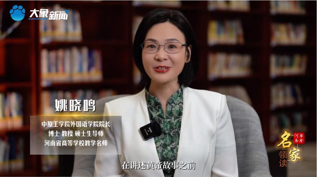“书香河南·名家领读”是在省委宣传部的指导下,由河南广播电视台生活事业部推出的一档融媒体读书节目,旨在推广全民阅读、建设书香河南。节目中,姚晓鸣教授领读的《中华源·河南故事·黄帝》,以中英文双语书写讲述黄帝故事,通过黄帝故事的现代讲述,进一步增强中华儿女的凝聚力、向心力,坚定文化自信。