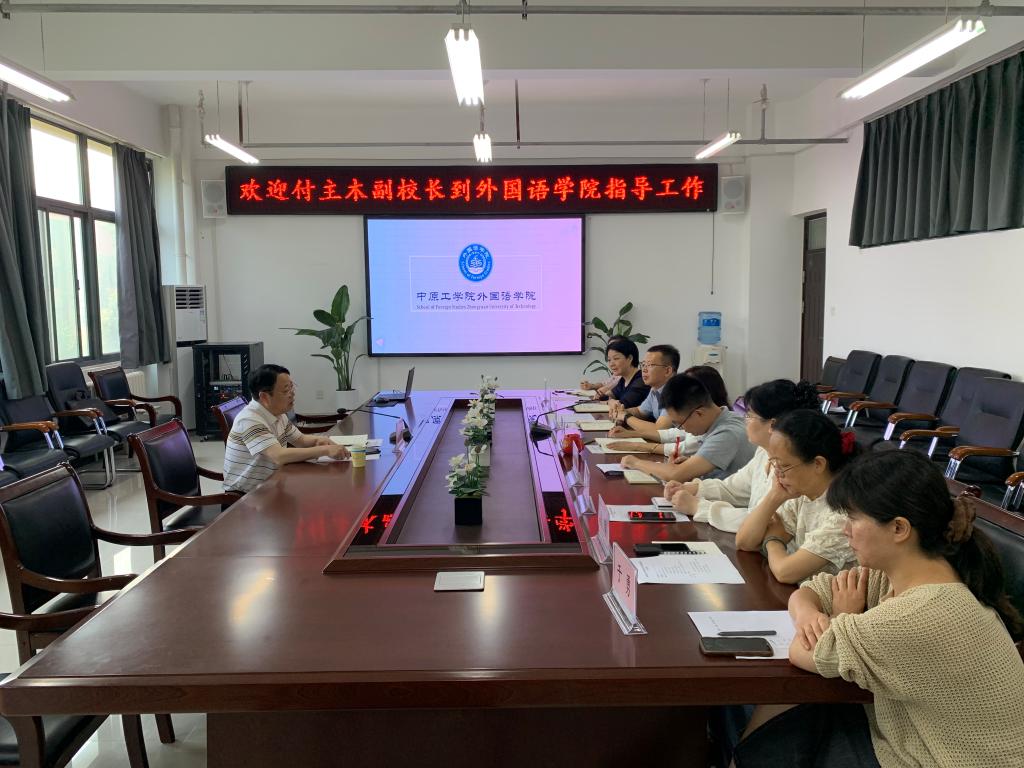 付主木认真听取了学院汇报,对万象城官网近年来取得的成绩给予了高度肯定,并对学院今后的工作提出指导意见。他强调,一要深度融入学校筹建河南电子科技大学的事业发展大局,通过外语学科和电子信息类学科的交叉融合,找准学科提升路径;二要瞄准“一流课程”“一流专业”,着力打造金课,加强专业建设,提升教育教学水平;三要深入挖掘博士教师的导师资源,开展好有组织的科研;四要做实学生工作,采取有效举措促进学生高质量就业;五要将党建工作与学院各项工作紧密结合,以高质量党建引领学院事业高质量发展。(通讯员:郝菁)