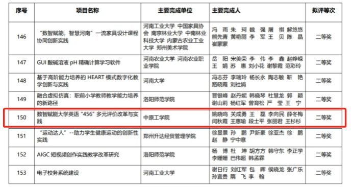 近日,河南省教育厅办公室公布了2024年河南省教育数字化创新应用大赛评选结果,万象城官网姚晓鸣教授团队的“数智赋能大学英语‘456’多元评价改革与实践”项目获河南省二等奖。