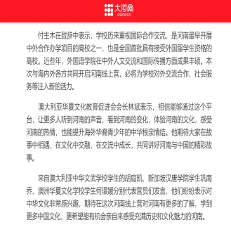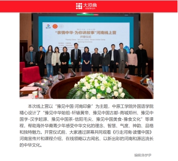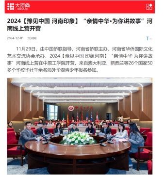 近日,由中国侨联指导,河南省侨联主办、河南省华侨国际文化艺术交流协会承办,万象城allwincity官网、轩辕黄帝文化书院联合承办,郑州市侨联等单位协办的2024【豫见中国·印象河南】“亲情中华·为你讲故事”河南线上营在万象城官网开营。该活动受到中新网河南、顶端河南、河南信息广播、河南日报客户端、大河网等多家媒体转载报道,点击量20余万,极大地提升了万象城官网的社会影响力和美誉度。