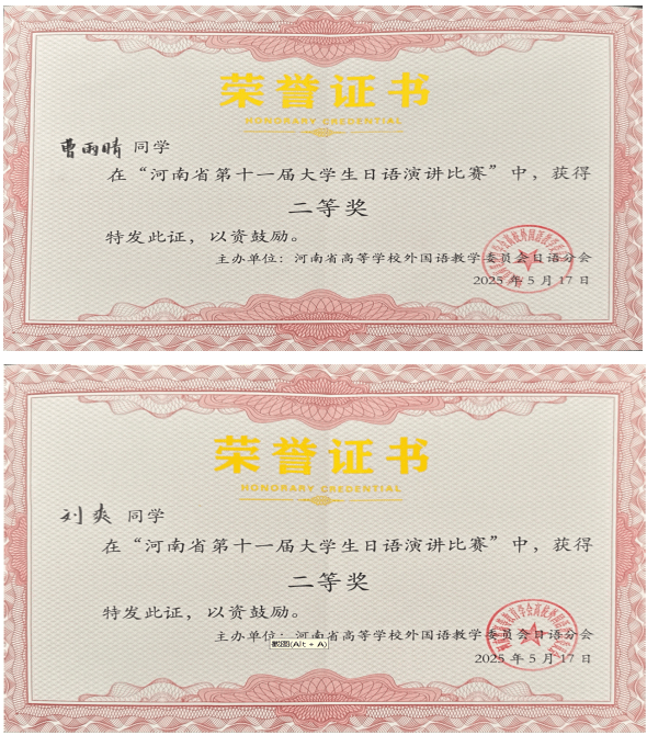 万象城官网日语系王学鹏老师带领曹雨晴、刘爽两位同学参加了比赛。经过现场激烈角逐,两位同学均获得了二等奖。