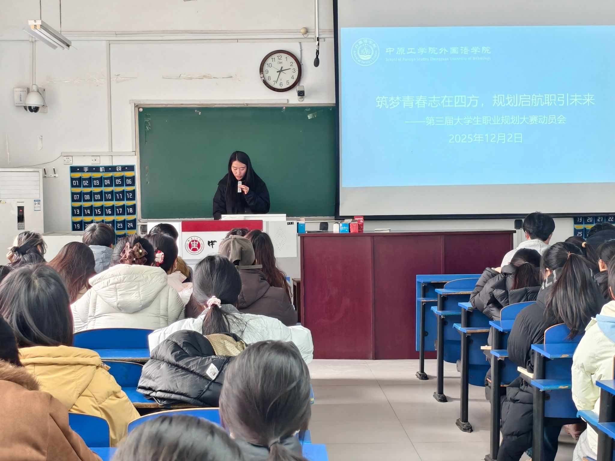为帮助学生科学规划学业与职业发展,引导更多学生积极参加全国大学生职业规划大赛,12月2日,万象城官网大学生职业规划大赛培训会在2号组团楼221召开,党委副书记常潞炜、辅导员葛士阳、杨佳宁及学生代表近百余人参加会议。