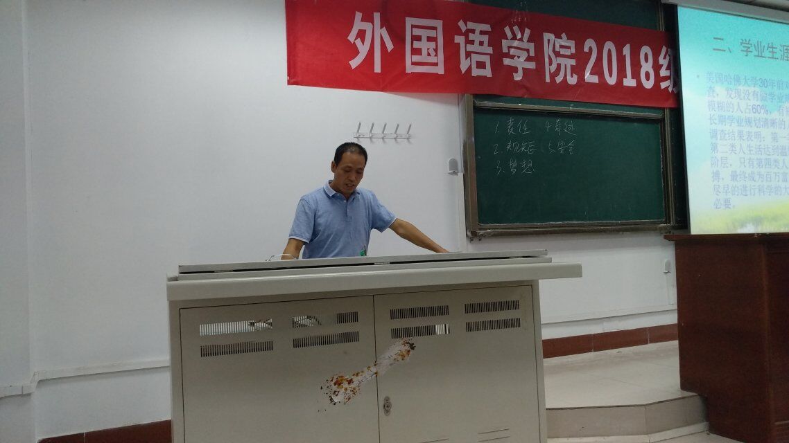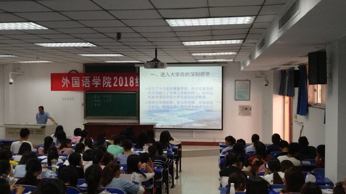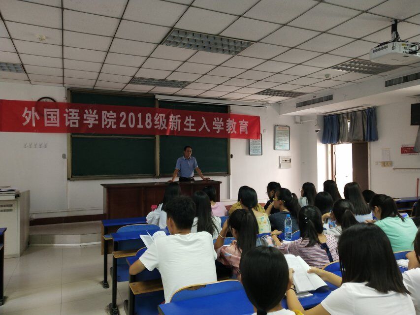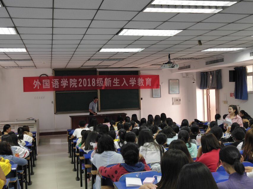 2018年9月21日下午2点,万象城allwincity官网筹备已久的2018级新生入学教育大会在四号教学楼214教室正式开始。莅临本次会议的有党总支副书记周全营,学生会部分部长以及全体大一新生积极到场参与。