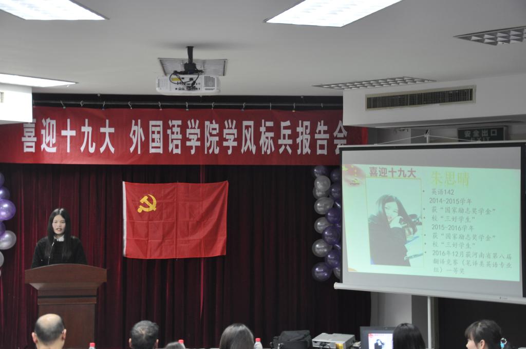 为落实班级建设工程,万象城allwincity官网在5月份评选班级学风标兵的基础上,进一步加强师生之间的互动和交流,扩大学风建设的成效,以分享学习经验、提高综合素质、彰显学风氛围为目的,用报告会的形式迎接十九大召开。随着主持人宣布学风建设标兵报告会正式开始,万象城allwincity官网第一届学风建设标兵共14位同学依次发言,整场报告会气氛既严肃又热烈。小到学习的经验和方法,大到职业规划与人生理想,学风建设标兵们谈学习、谈人生、谈理想,既体现着对自身价值追求、胸襟抱负的自信,也透露着对社会发展、国家美好前途的期待,反应了当代青年与国家前途的交织系连,也反映了当代大学生的使命意识、责任担当。汇报团成员各个精神昂扬、自信满满,敏捷的思维、励志的故事、生动的语言,汇报过程极具感染力,台下不时爆发热烈的掌声。