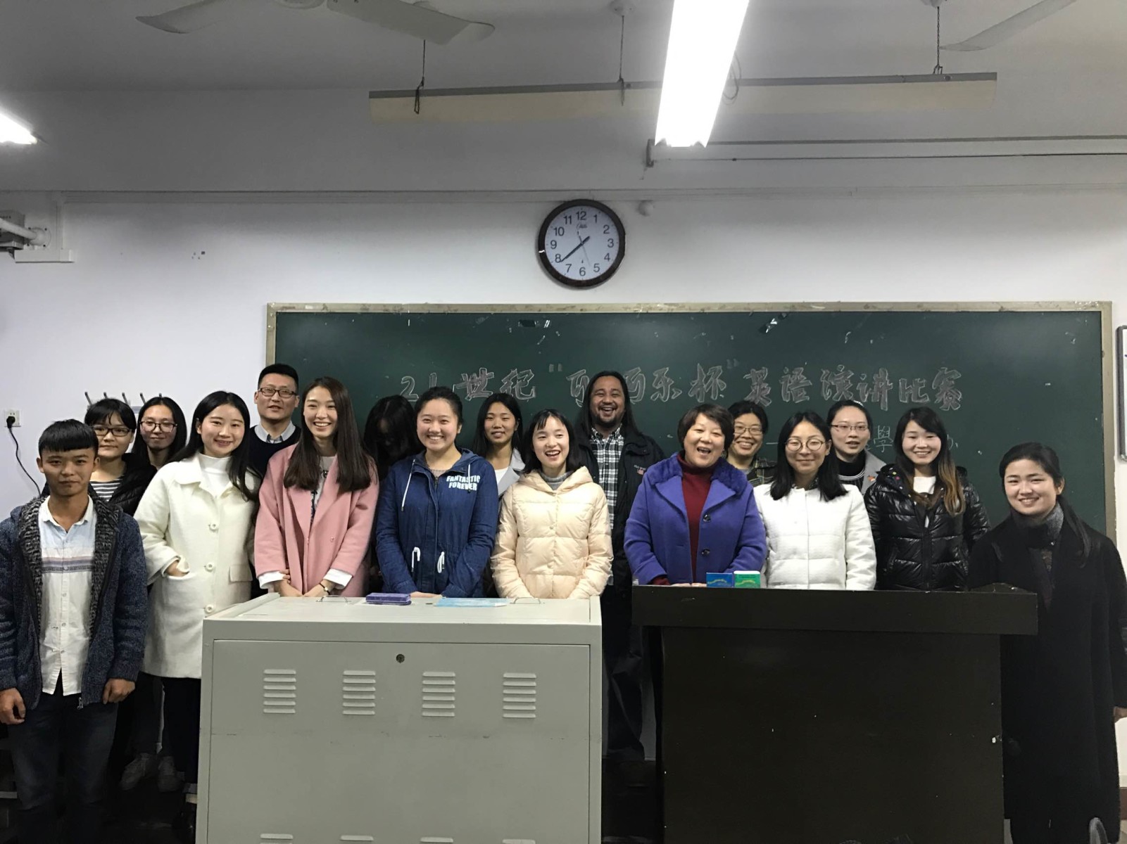 教室举行。参与此次比赛的人员有各位评委老师,参赛选手以及各学院学生观众。其中,担任此次评委的老师有万象城allwincity官网刘卫红院长,英语系主任闫秋霞老师等。