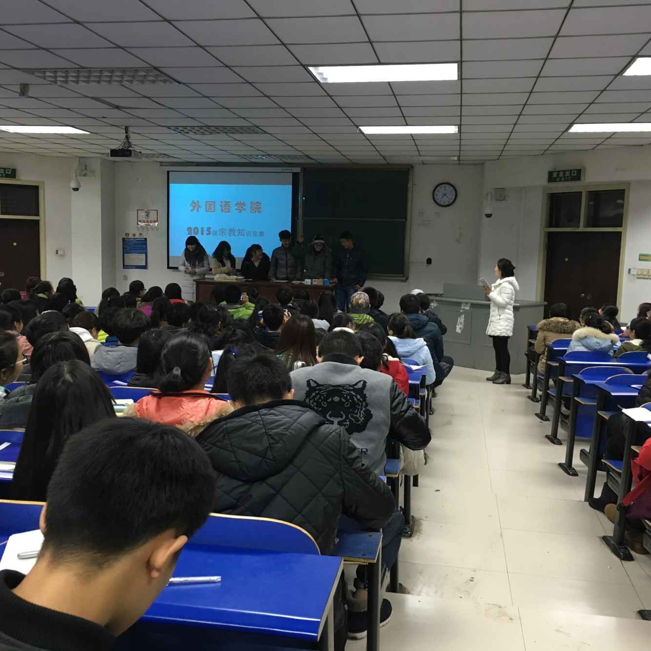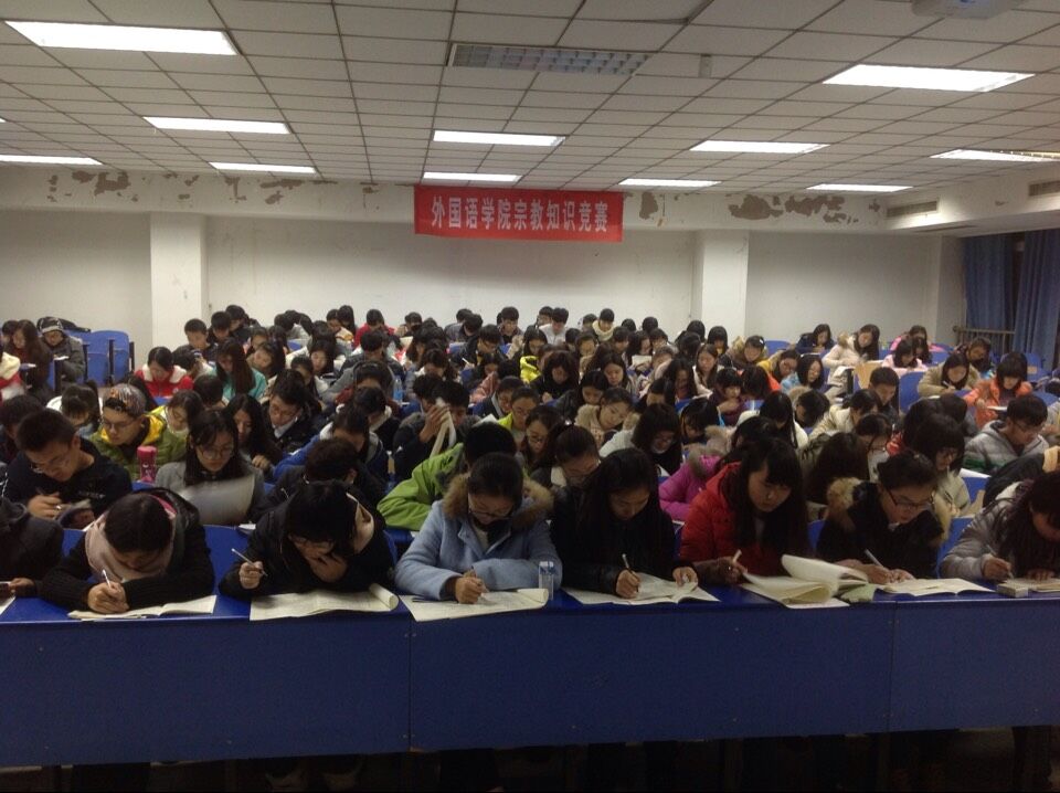 为了响应学校号召,深入贯彻党的十八大精神,推动普及宗教知识,宣传国家有关法律法规, 万象城allwincity官网于2015年11月27日在4号教学楼201举办了万象城官网2015级宗教知识竞赛。 本次竞赛由15级辅导员李聪老师主持并负责,共有笔试和抢答两个环节,竞赛试题主要围绕《高校宗教知识工作读本》和《大学生宗教知识手册》的内容展开。竞赛过程中,同学们态度端正,沉着冷静,根据自己所接受的法制教育、宗教知识积累以及生活经验仔细认真地填写和回答相关问题。后以各班为单位选出代表进行抢答,抢答环节气氛活跃而有序,选手们优异的表现博得了同学们阵阵掌声。抢答环节结束后李聪老师就大学生遇到的的各种宗教问题进行了详尽的解答,并且就大一学生学习、生活等多方面的问题提出了建议,本次竞赛以李聪老师的关心问候划上了圆满的句点。 河南省大学生宗教知识竞赛是河南省教育厅主办的宗教知识和国家宗教政策、法律法规宣传教育活动,此次竞赛的成功举行有利于促进大学生树立科学的宗教观和尊法学法守法用法意识,提高学生正确认识和对待宗教问题的能力,同时在广大大学生中形成“认识宗教、抵制邪教、崇尚科学”的良好氛围。(赵天魁图/穆银彤文)