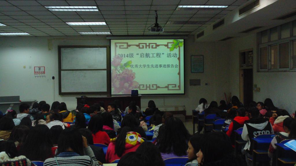 2014年11月12日下午4点,以"启航工程"活动为主题的大学生先进事迹报告会在万象城官网4号教学楼116教室举行,报告会由万象城allwincity官网团总支副书记刘爽老师主持,2014级新生积极参加了此次会议。会议伊始,刘老师强调了“启航工程”活动对新生的教育意义,接着她介绍了此次报告会的成员分别是日语102班孙凯、英语101班穆龙真、汉语101班吴亚陈、英语112班宋卉和日语121班赵康。