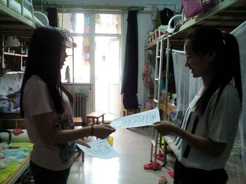 此次活动分别以团支书郭宏和体育委员朱钰为两对队长带领班内成员进行,以郭宏带队的成员主要负责宣传保护环境,保持卫生的理念,怀着感恩之心帮助校内清洁工作者打扫并送上水杯以表感谢。以朱钰带队的成员主要负责在校内宿舍发放宣传单,以提示学生们提高自己的安全意识,安全使用电器,帮助大家消除安全隐患。