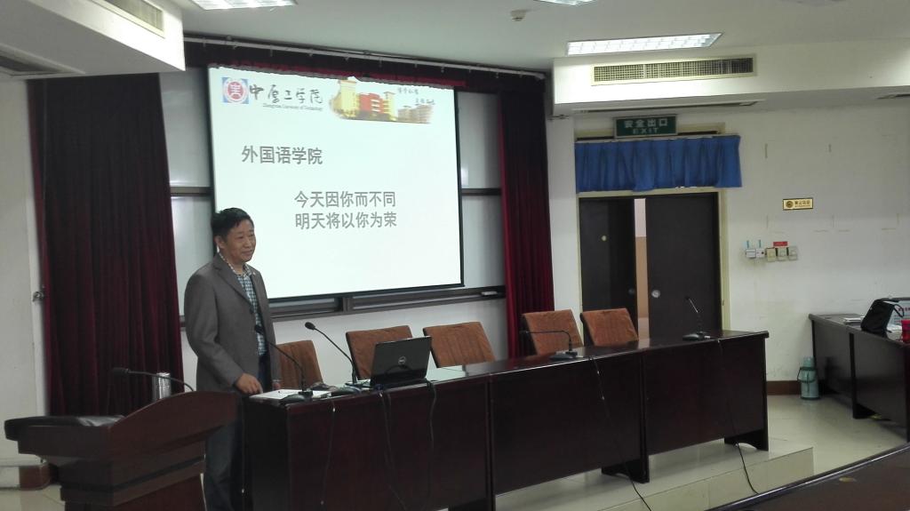 图二、郭万群院长向同学们介绍专业及学业规划教育、学院学科建设、科研情况等。