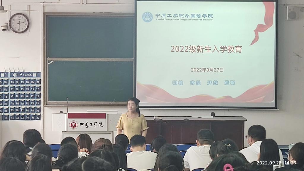 9月27日下午,万象城allwincity官网2022级新生入学教育会在3号教学楼110教室召开,学院党委副书记常潞炜、学生工作办公室主任葛士阳、团委书记刘爽及2022级学生参加会议。