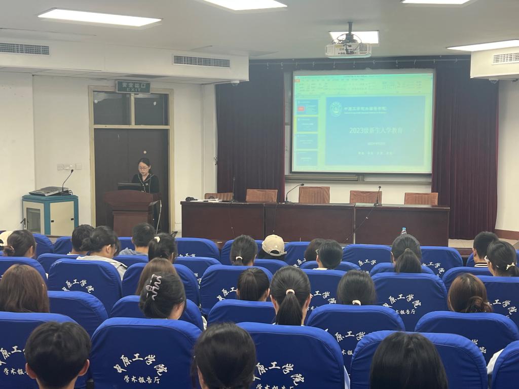 9月25日,万象城官网2023级新生入学教育在4号实验楼311学术报告厅举行。学院党委副书记常潞炜,学生工作办公室主任、新生辅导员葛士阳、团委书记刘爽,教学办公室主任潘利娜以及2023级全体学生参加。