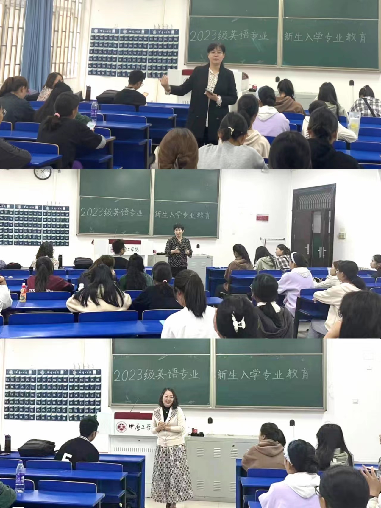 9月27日下午,英语系在三号楼122教师组织2023级新生开展专业教育,英语系郭亭亭、刘丽、郭建及2023级英语专业全体学生参加。