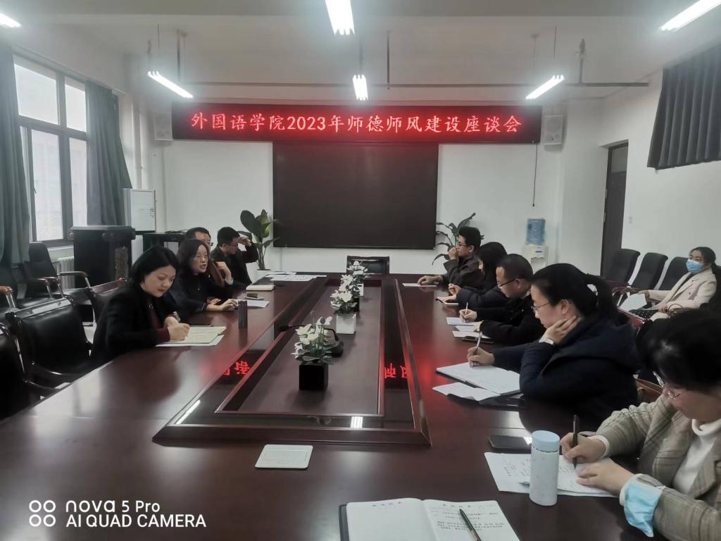本次系列座谈会上,学院党委书记柳素平强调,学院为落实好立德树人根本任务,一直把学风和师德师风建设摆在首要位置,希望教师立足岗位,潜心育人,严守师德底线,筑牢思想防线,以严谨的教风,规范教学行为,严防课堂教学事故;希望同学们立大志,学真本领,做好各个环节的学习,出好成绩。全体师生一起努力,为全面提高人才培养质量,为学校高质量发展作出新的更大贡献。(通讯员:潘利娜)