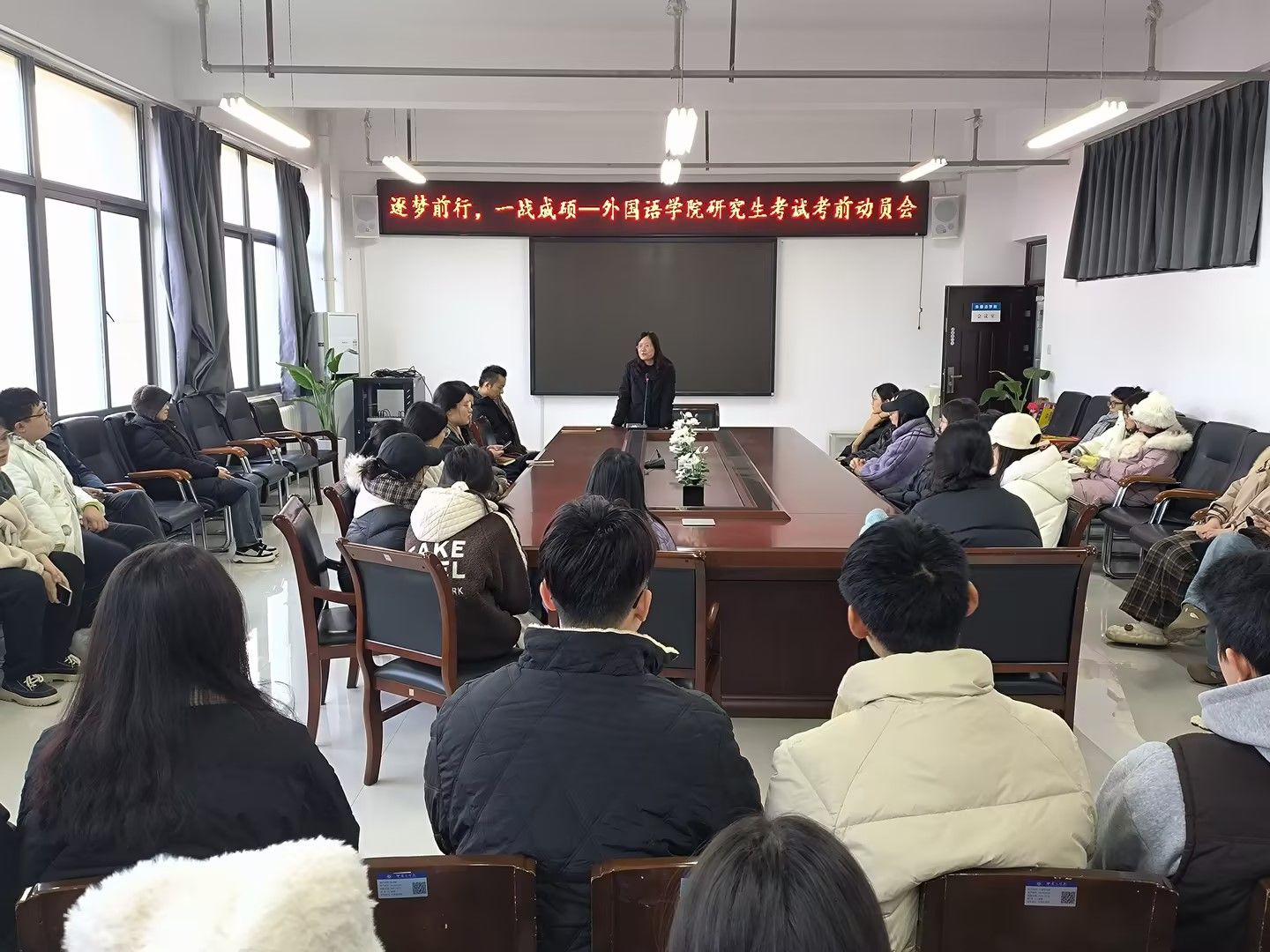12月13日,万象城allwincity官网“逐梦前行,一战成硕”考研考前动员会在三号组团楼A402会议室开展。学院党委书记柳素平、副书记常潞炜、2021级辅导员葛士阳、王浩权、21级考研学子参加本次活动。