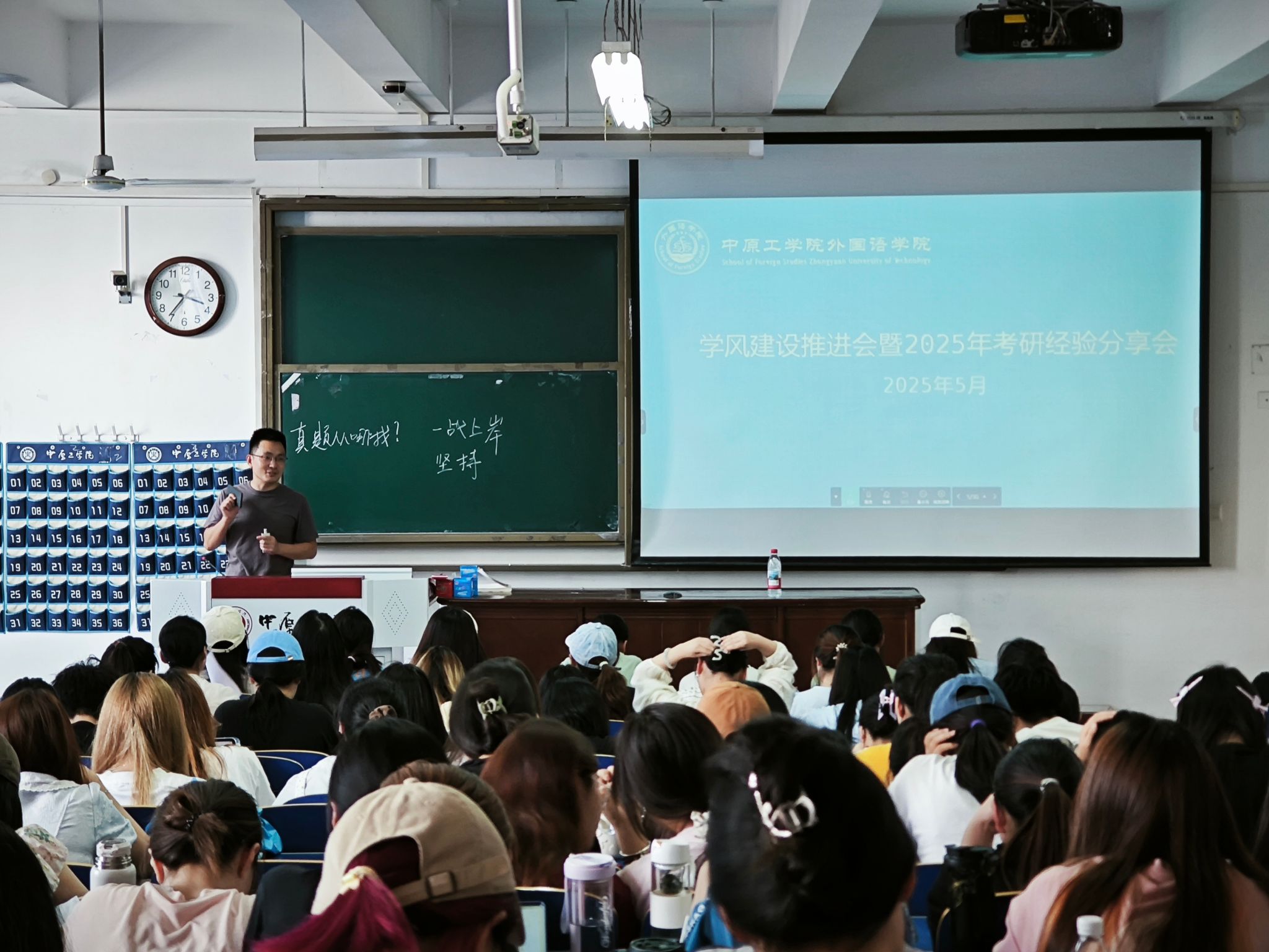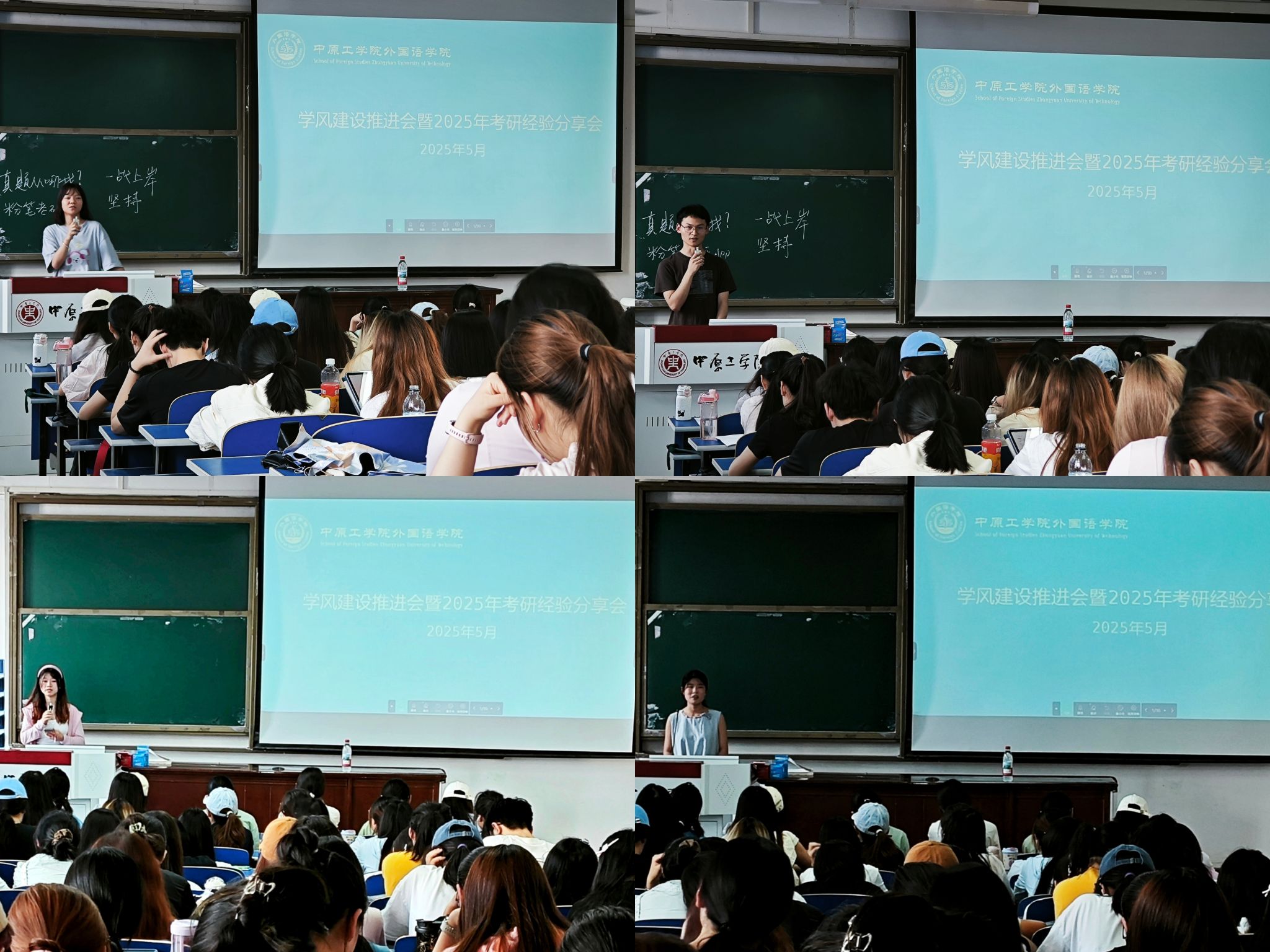 5月20日,万象城allwincity官网2025年春季学期学风建设推进会暨考研经验分享会在3号教学楼205教室成功举办。16名考研成功学生到会分享经验,万象城allwincity官网党委副书记常潞炜、团委书记刘爽、2023、2022级全体学生参加会议。