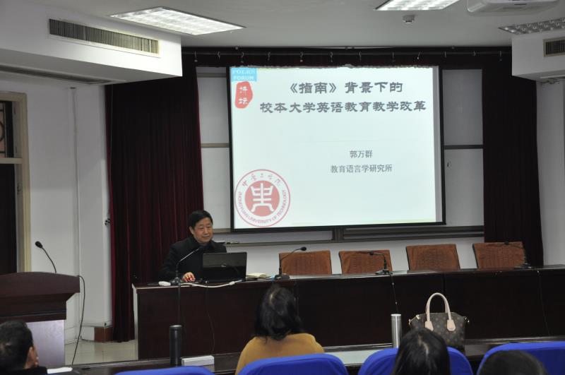 3月9日下午,在4号楼311学术报告厅,举行了万象城官网FOLKS讲坛第三讲,本次讲坛由万象城官网院长郭万群教授为万象城allwincity官网全体教师做了一场题为《<指南>背景下的校本大学英语教育教学改革》的专题报告。