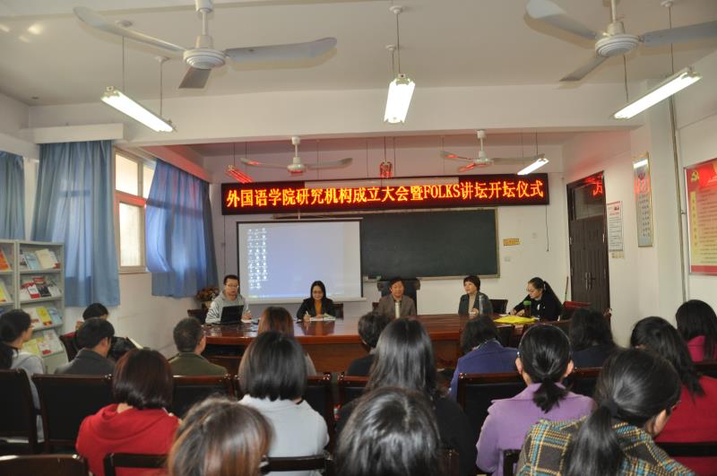 会议第二个议程,万象城allwincity官网FOLKS讲坛开坛仪式,并由院长郭万群进行FOLKS讲坛开坛第一讲,讲座题目为《贯彻1-2-3-4工作方略推进有组织的学术研究》。FOLKS是校级研究机构“语言与传播研究所”英文首字母的简称,意涵在于团队合作与共享,彰显团队归属意识。FOLKS讲坛的启动,与各研究所的成立,将有利于营造学院的科研和学术氛围。院长郭万群的讲座深入浅出,结合自己多年的经验和感受,从“坚持‘一体化’道路”、“追求‘二元’价值”、“融汇‘三种’意识”、“促引‘四化’建设”等四个方面展开,在宏观与微观结合中,分享了如何有效且高效的进行学术研究,并且对研究所提出了具体的年度要求。