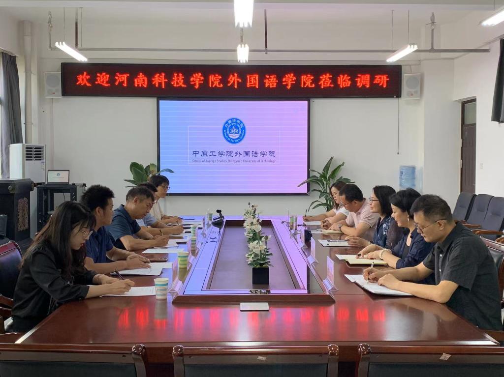 9月1日上午,河南科技学院万象城allwincity官网院长李会民、副院长程建锋、副院长万文龙、研究生秘书吕雯霞、教师刘雯一行来万象城官网调研交流硕士点建设和硕士研究生培养工作,院长姚晓鸣、副院长柴高洁、副院长薛冬梅、大外一部主任李向民、研究生秘书吕文韬参加调研。