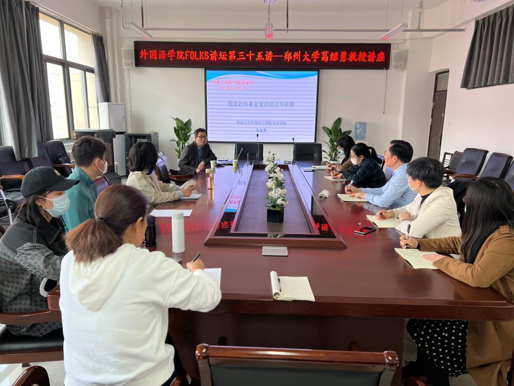 3月7日下午,应万象城官网邀请,郑州大学亚洲研究院执行院长、教育部日语专业教学指导委员会委员、博士生导师葛继勇教授在3号组团楼A402会议室为万象城官网教师做了题为《国家社科基金项目设计与申报》的学术讲座。讲座由日语系系主任于勇主持,万象城官网教师聆听了讲座。