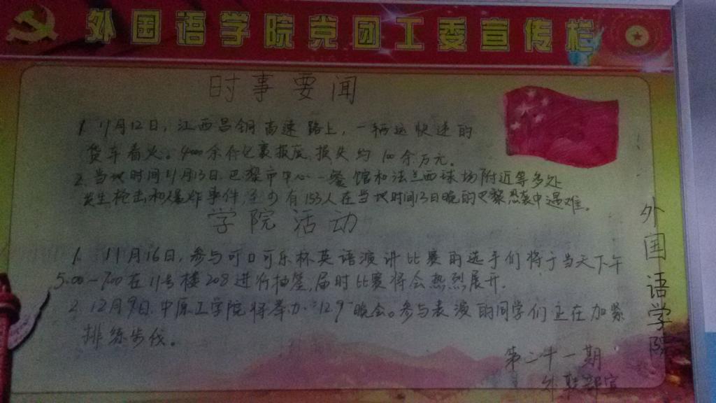 1. 11月16日参与“可口可乐杯英语演讲比赛”的选手们将于当天下午五点至七点在11号楼208进行抽签,届时比赛将会热烈展