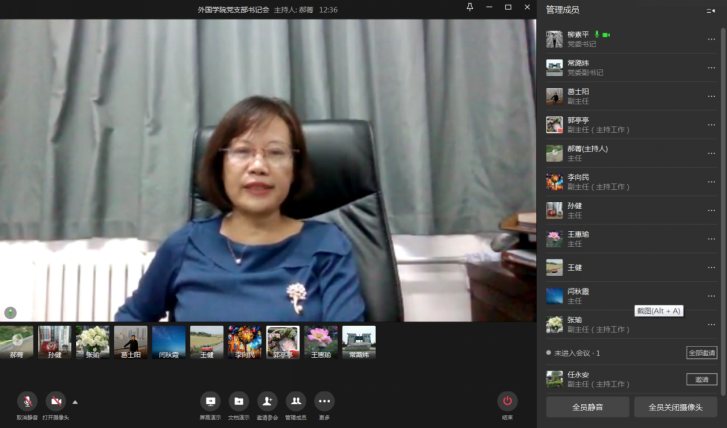 会议结合近阶段学院党建工作,从意识形态工作、党史学习教育督查、党课工作安排、部门安全稳定四方面,对党支部建设进行了统一部署和具体指导,并提出工作要求。一是要加强师生意识形态安全教育,通过全面管控、严格防范,推进落实党委意识形态工作责任制;二是要继续扎实做好党史学习教育,严谨切实开展“三会一课”“主题党日活动”“组织生活会”等活动,并进行规范记录和总结;三是要按时完成学院制定的党课计划,认真做好党员培训;四是要压实部门安全稳定责任,确保平安外院。