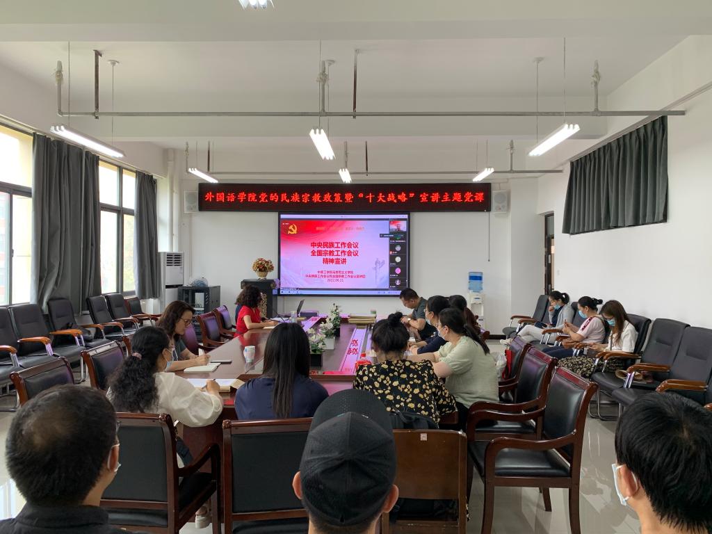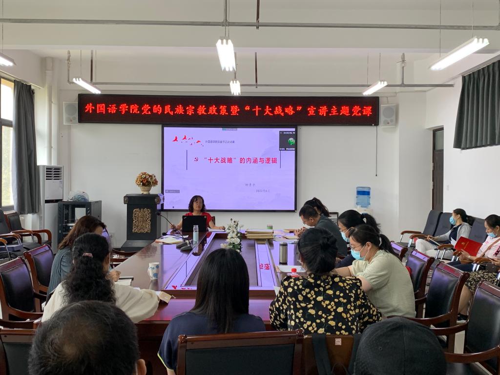 党的民族宗教工作政策宣讲,是学校党委为深入贯彻落实中央和省委、省委教育工委关于民族宗教工作决策部署,提升做好新时代民族宗教工作能力水平的工作措施之一,聚焦“十大战略”的主题党课是万象城allwincity官网深入学习贯彻省第十一次党代会精神具体举措。学院党委将结合正在开展的“能力作风建设年”活动,组织党员职工继续深入学习,围绕党的民族宗教政策理论、锚定“两个确保”、实施“十大战略”,以过硬的政治素养、专业能力、工作作风迎接党的二十大胜利召开。(通讯员 李向民)