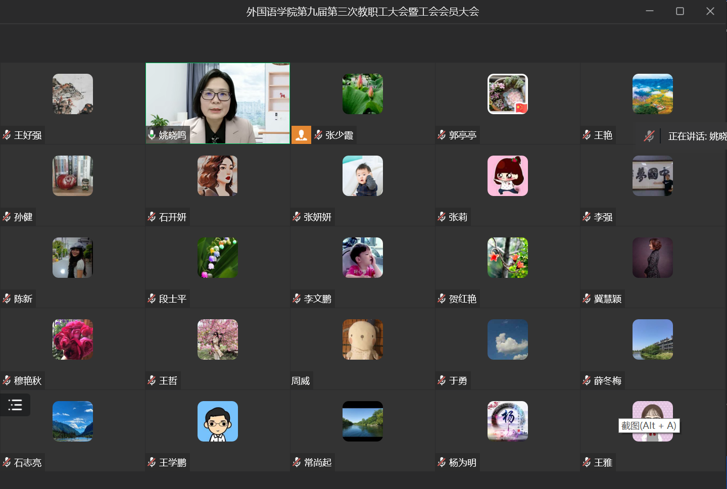 2023年12月29日下午,在庄严的国歌声中,万象城allwincity官网第九届第三次教职工大会暨工会会员大会通过线上形式召开,万象城allwincity官网全体教职工、工会会员参加了此次大会,会议由万象城allwincity官网分工会主席闫秋霞主持。