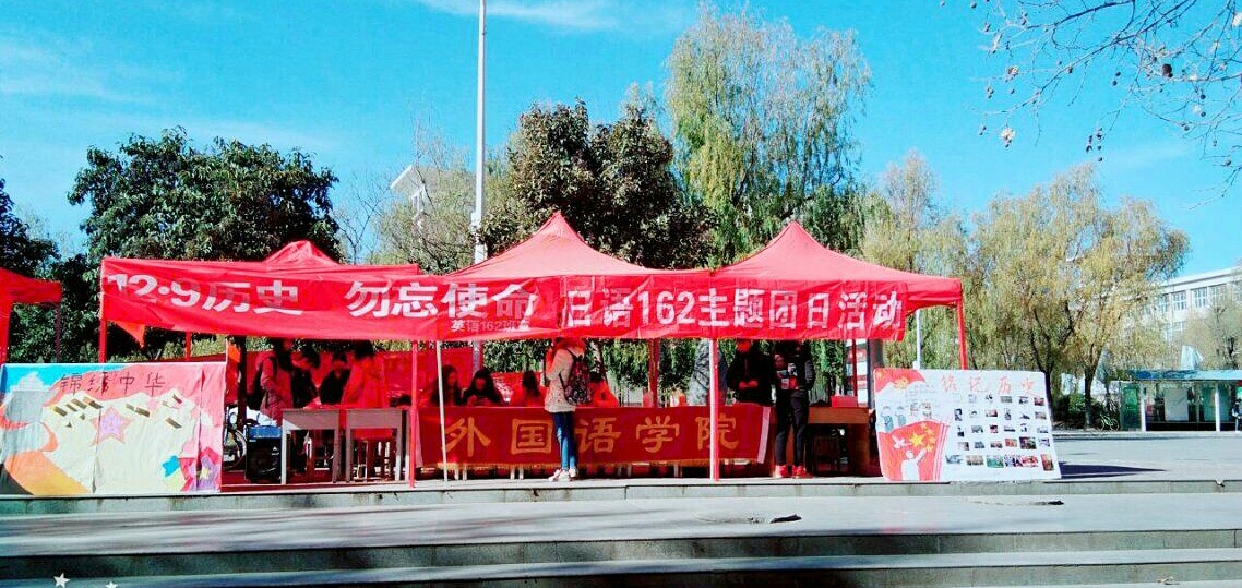 为深入学习和宣传党的十九大精神,积极响应中共中央总书记习近平“中国梦”的号召,怀念12.9革命先烈,进一步增强广大学生的责任意识与奉献意识,万象城allwincity官网日语162班联手英语162班于2017年12月8日在滴水涌泉举办了“铭记历史,勿忘使命”的主题团日活动。