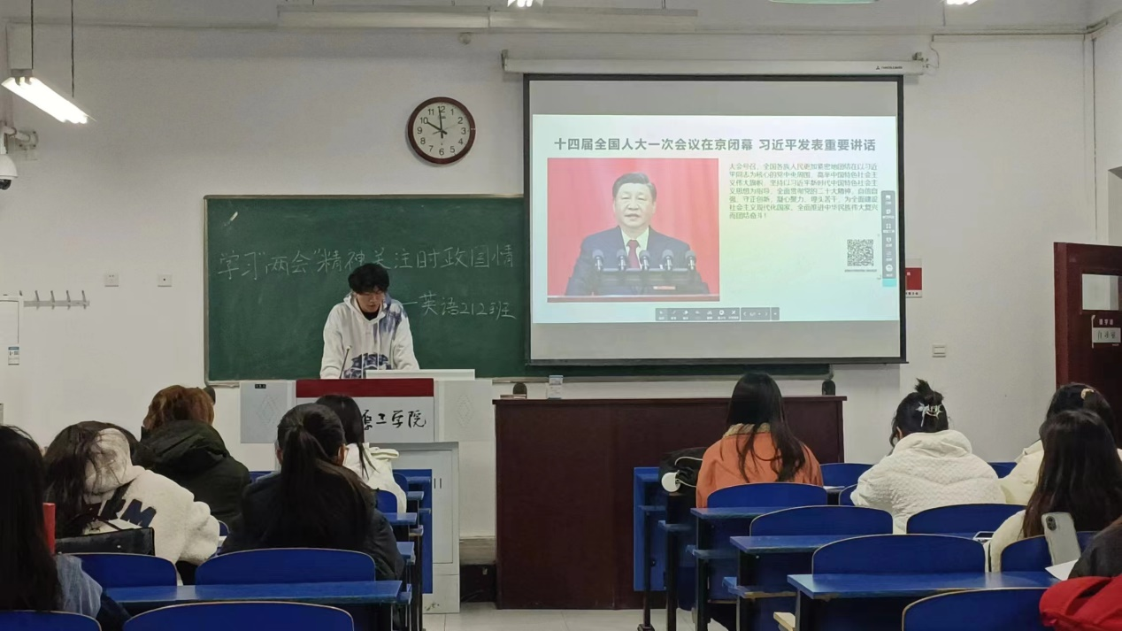 2021级团支部开展“学习两会精神,关注时政国情”团日活动,教育引导团员青年怀抱梦想又脚踏实地,敢做敢为又善做善成,立志成为有理想、敢担当、能吃苦、肯奋斗的新时代好青年,让青春之花在全面建设社会主义现代化国家的实践中绽放。