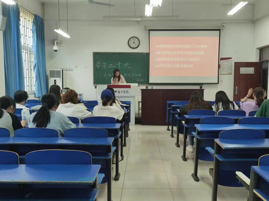 2021级团支部切实发扬共青团“党旗所指就是团旗所向”的优良传统,持续深化学习党的二十大精神和习近平总书记重要回信精神,开展“全国保密宣传教育月主题活动”及“大学生就业引航主题活动”等团日活动。深入学习大会精神,认清形势和任务;增强保密意识,保守国家秘密,维护国家安全,筑牢安全防线;强化就业意识,提升对个人价值的实现、职业发展规划等方面的理性认识。