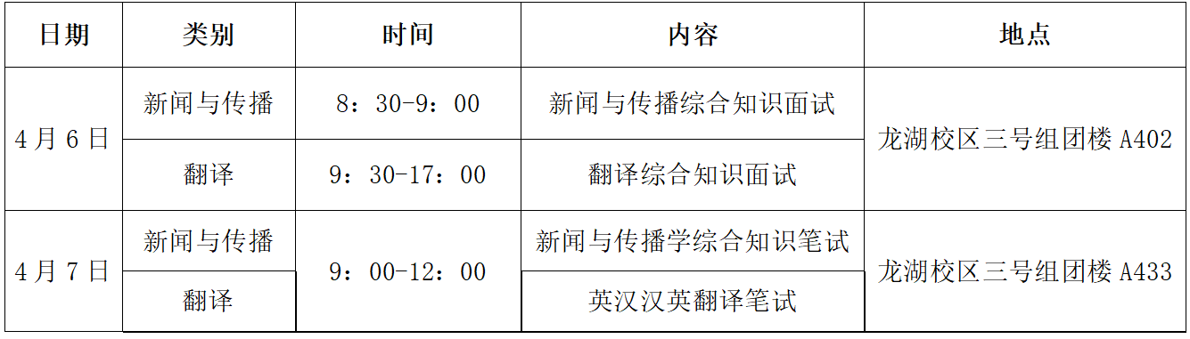 一志愿复试时间为4月6日,具体安排见表2。调剂考生的复试在4月8日调剂系统开启后进行。