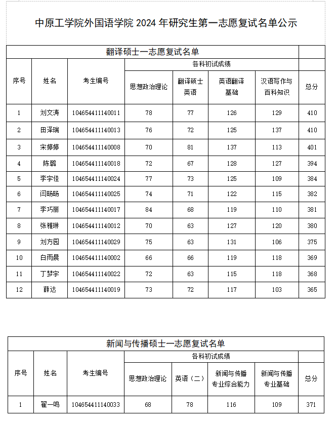 万象城allwincity官网2024年硕士研究生复试综合成绩公示(第一志愿 )