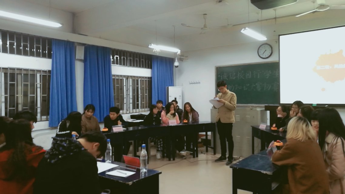 此次比赛为淘汰赛,共两轮,分为第一轮的必答题和第二轮的必答题,抢答题与风险题。八组选手依次登场,选手们稳扎稳打,步步为营,一时难分高下。最为精彩的是抢答环节,各组选手针锋相对,比反应,练手速,把赛场气氛推向高潮。随后,代丰辉同学对本次比赛做了详细到位的点评。经过激烈角逐,获奖名单如下:一等奖梦想战队,二等奖嘉心悦饼战队,三等奖TFgirls战队、风之彩战队。最后,评委老师与参赛选手合影留念,本次比赛至此画上了圆满的句号。