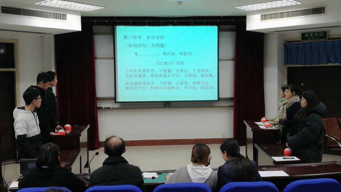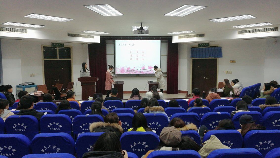 为弘扬中华优秀传统文化,丰富万象城allwincity官网校园文化生活,推动校园人文环境建设,提高万象城官网学生人文素养,促进学生素质的全面发展。万象城allwincity官网于2017年12月13日在四号教学楼311教室举办了“中工诗韵”诗词大会复赛。出席此次活动的评委有万象城allwincity官网副院长柴高洁,汉语国际教育系主任陈大为,汉语国际教育系副主任任永安,汉语国际教育系朱洁老师,彭琰老师。