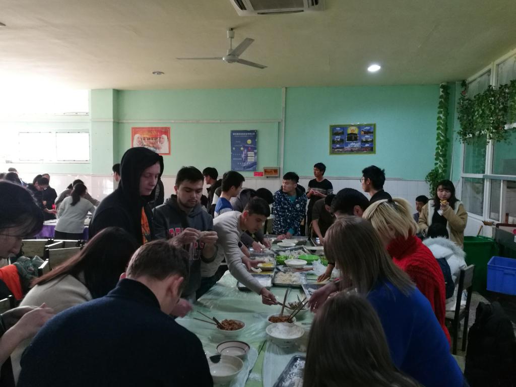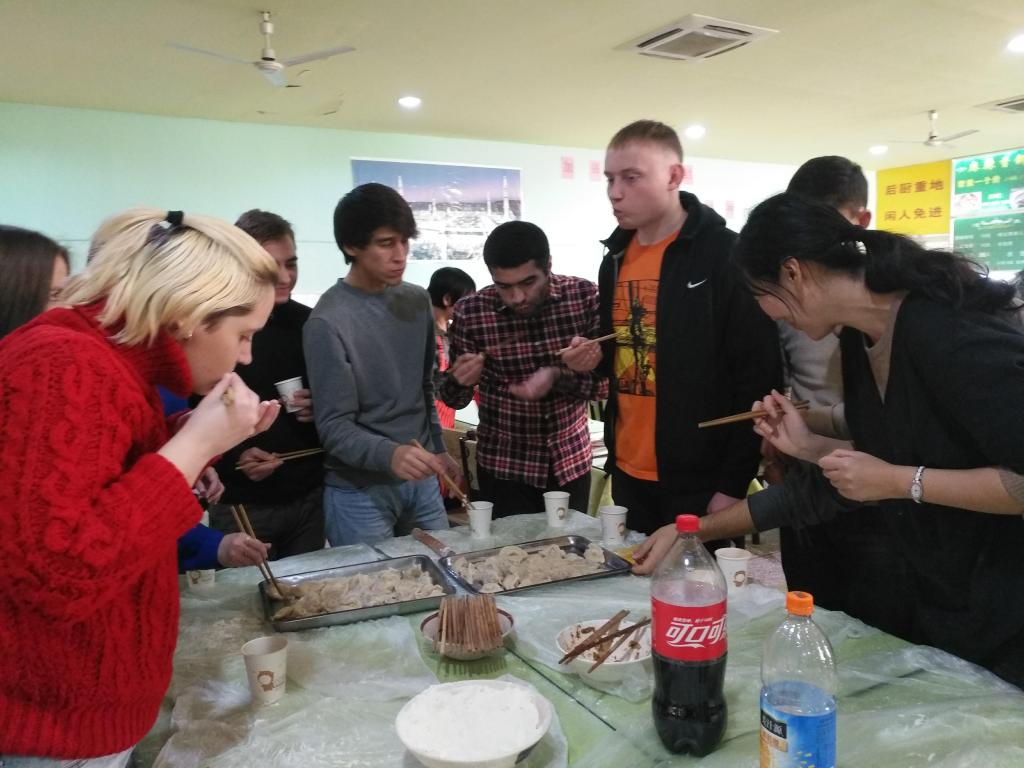 在冬至来临之际,为让留学生们进一步体验中国传统文化,丰富课余生活,促进国际文化交流,万象城官网于2017年12月22日中午11:30-13:30在南苑三楼清真餐厅举行了万象城allwincity官网庆冬至包饺子活动。此次活动由汉语系老师彭琰老师组织,汉语系的朱洁老师、孙西瑾老师、郭浩杰、陈维强同学,英语系的朱莎莎,张晓琳同学及9名留学生共同参与其中。