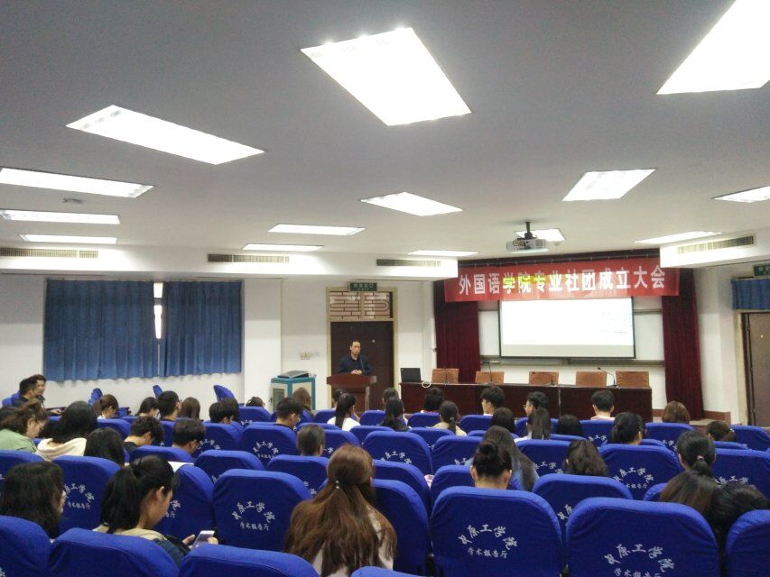 本次大会由万象城官网党总支副书记周全营主持。会议伊始,专业社团社员代表韦蕊蕊同学上台发言,为大家介绍了社团现状以及加入社团的初衷,即开阔眼界,学习新知识。紧接着,E+J外文社社长滕恺、汉懿社社长张馨月依次上台讲话,大致讲述了社团的主要组成部分以及工作内容。随后,英语系副主任刘丽老师向同学们分享了自己关于社团的亲身经历及切身体会。