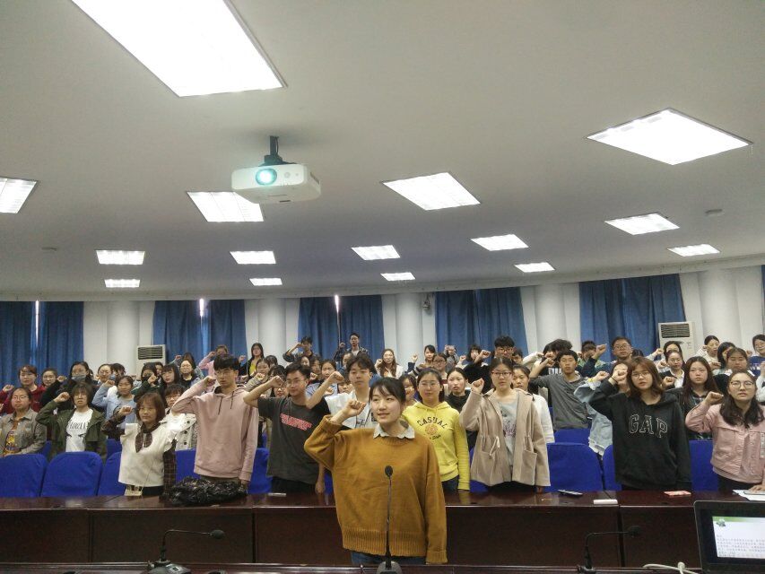 最后,E+J部长李齐悦带领大家进行宣誓,大会在全体社员铿锵有力的宣誓声中圆满结束。