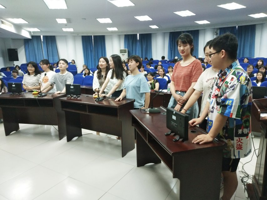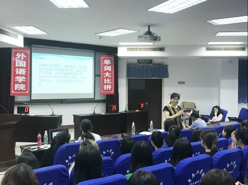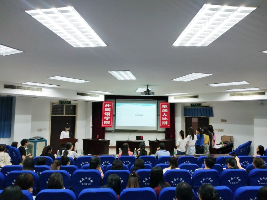 单词大赛共分为三个环节: 单词释义、词文辨析及抢答题,共有来自英语专业的六个班级的四十八名同学们参与其中。比赛中,他们热情投入,沉着冷静,现场气氛紧张而活跃,在场观众在观看比赛的同时也一同记忆单词。