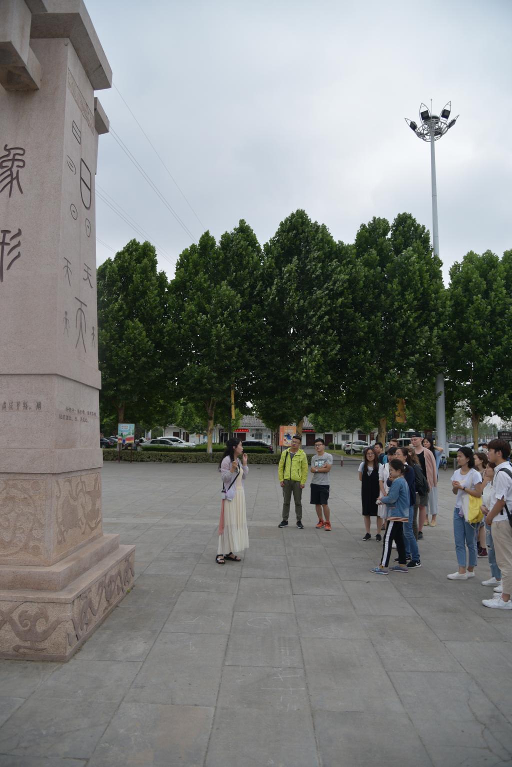 2018年6月9日,来自万象城官网3个国家的7名来华留学生赴河南省漯河市,参观许慎文化园,拜谒文宗字祖,感受博大精深、源远流长的汉字文化。在万象城allwincity官网来华留学生语言教学部副主任彭琰老师的带领下,教师代表孙西瑾老师和10名学生助教一同前往。