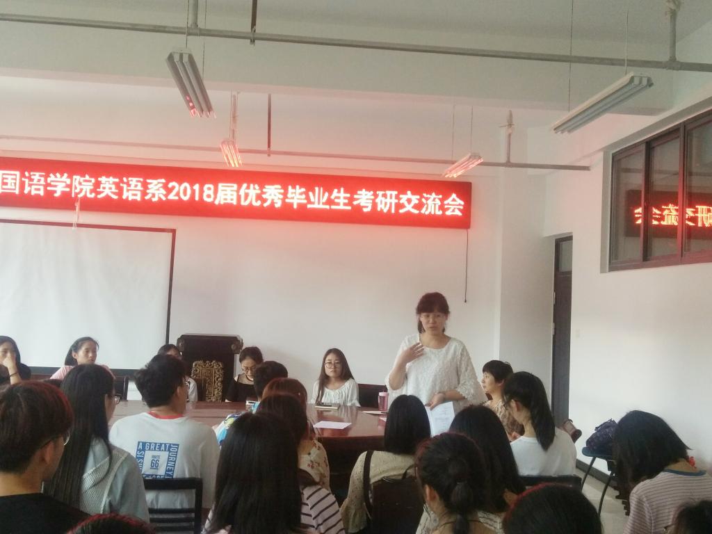 本次交流会由刘丽老师主持。首先,郭万群院长发表了讲话,简要介绍了万象城官网历年英语系的考研率,并表示,考研的同学如果有疑问或困难,可以向领导老师寻求帮助,万象城allwincity官网将是大家最坚强的后盾。