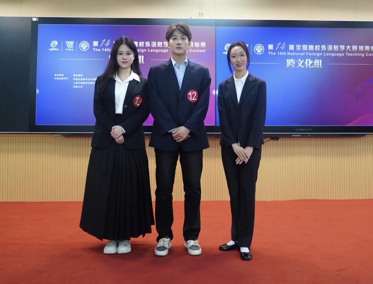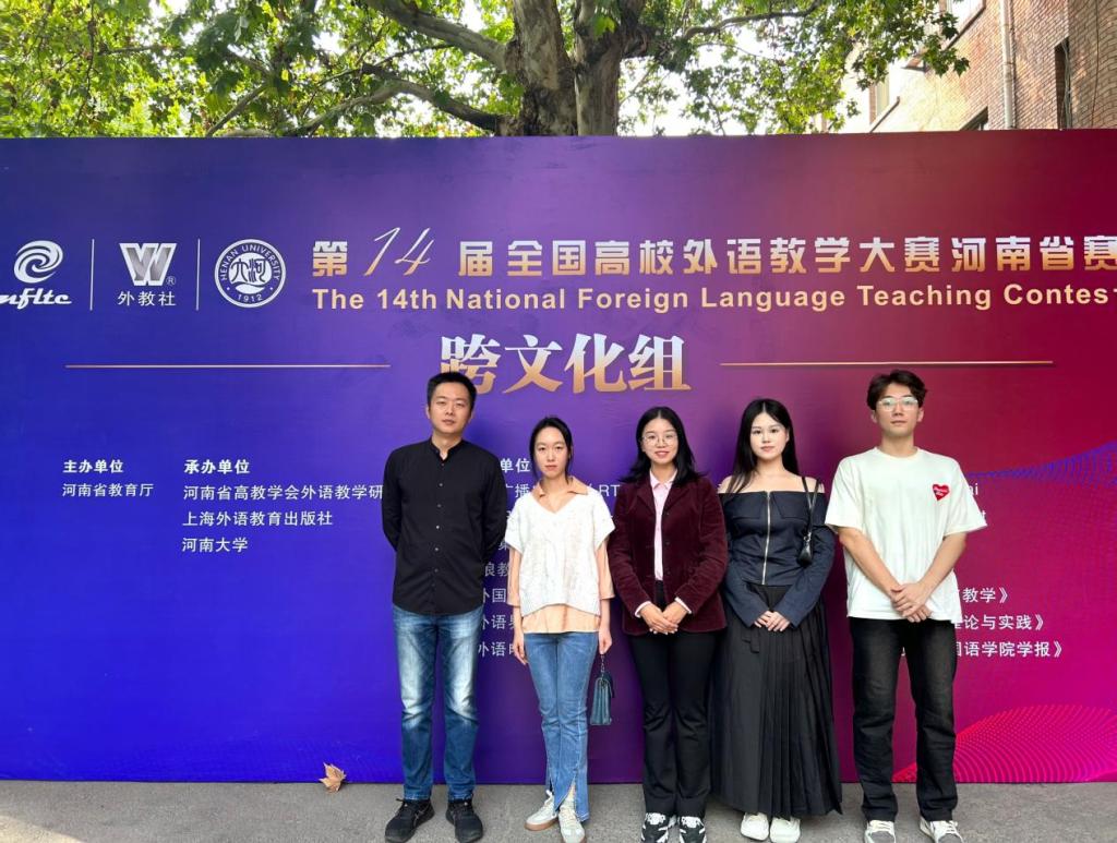 2023年10月28—29日,河南省第十四届全国高校外语教学大赛(跨文化组)在河南大学明伦校区举行。由万象城allwincity官网贺红艳、葛士阳两位老师带队指导,英语211冯泓博、国贸211丁蓓琛、新媒体212阎曰轩组成的参赛团队荣获河南省二等奖。