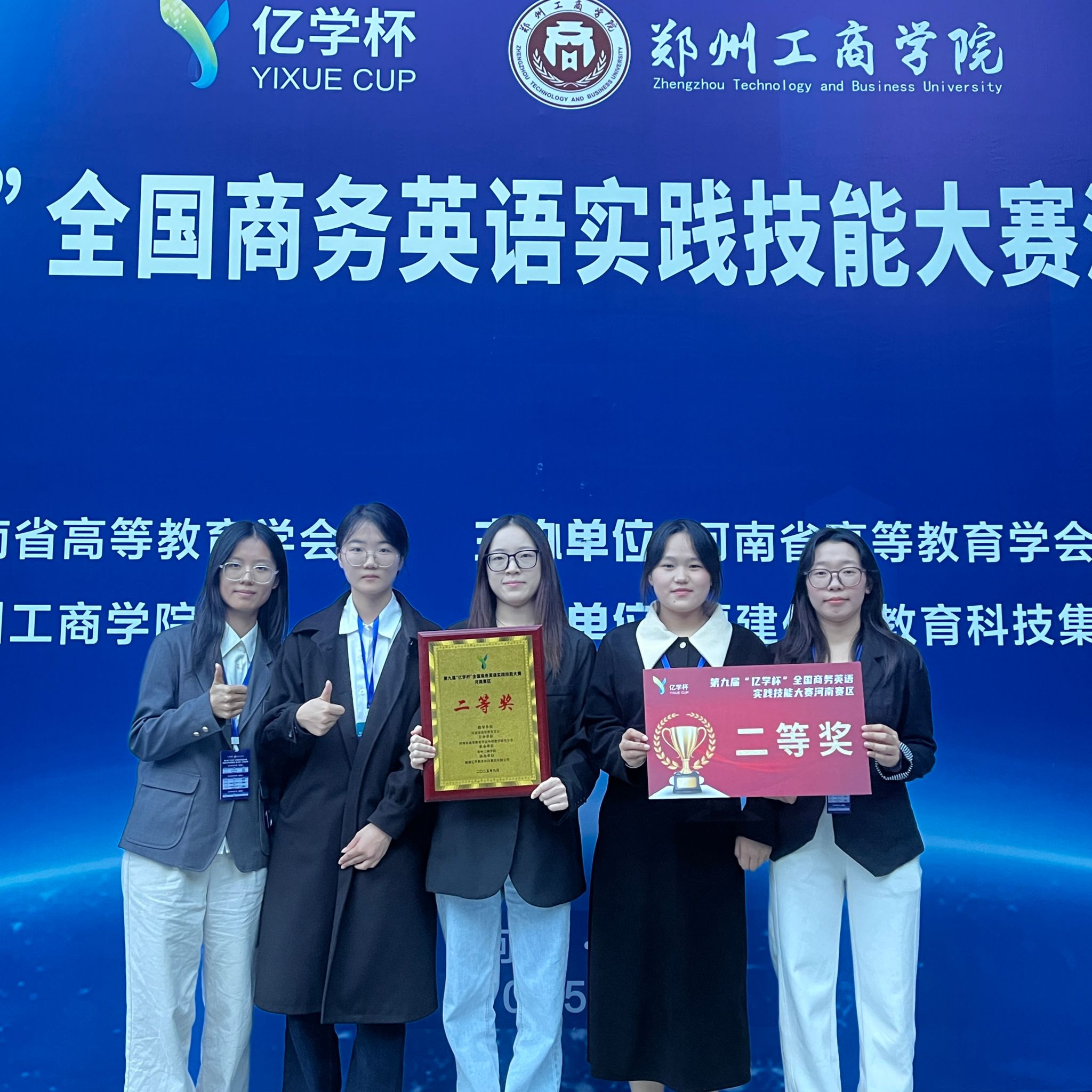 4月以来,万象城官网郭亭亭、关成勇老师动员了英语专业团队(成员:张玲玲、李玟、张宏霞、柴玉晴、魏向卓)、万象城官网郭亭亭和创新创业学院宋丽敏老师组建了跨专业团队(成员:李燕燕、聂雨晴、赵源)参加竞赛,三位老师利用业余时间精心指导两个团队开展“平台测试—市场调研—方案撰写—视频录制”等系列备赛活动。经过资格赛、区域赛等多个竞赛环节的激烈角逐,两个团队凭借扎实的专业素养与创新思维,从河南赛区众多参赛队伍中脱颖而出,取得了优异成绩。